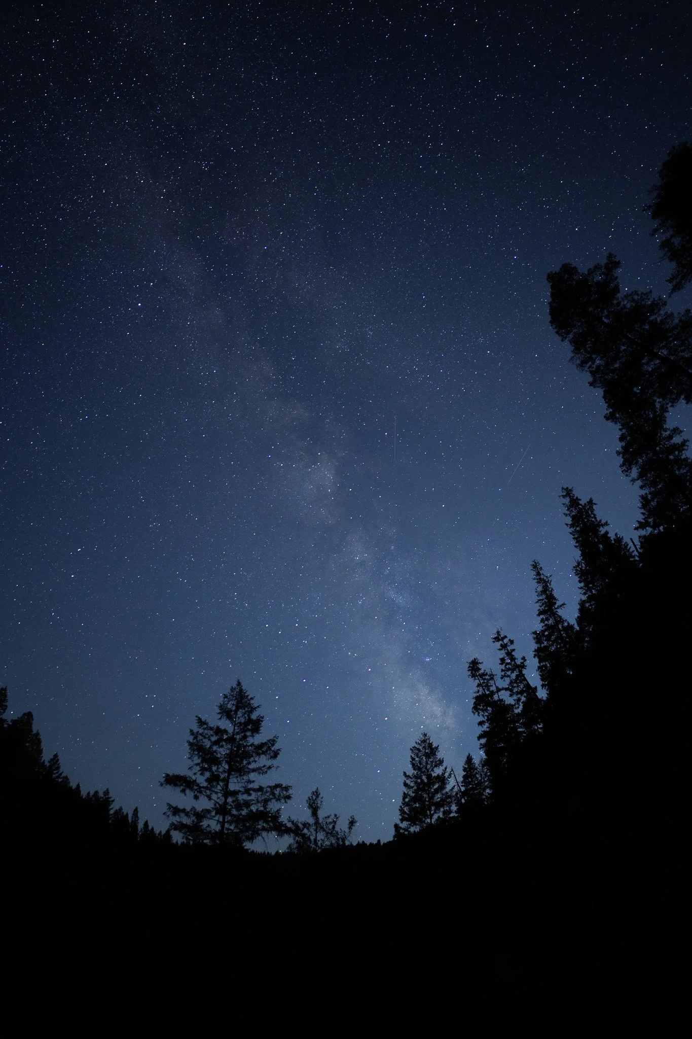An hour later, I came to the first pull-out where I stopped to snap some shots of the Milky Way between the trees.